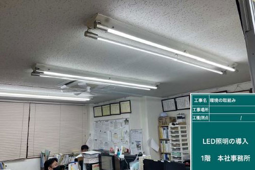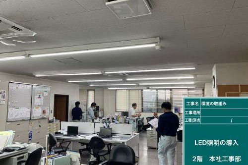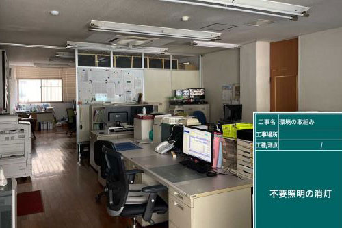 本社のLED照明を70%導入し、不用照明等の消灯を徹底して削減出来ている。